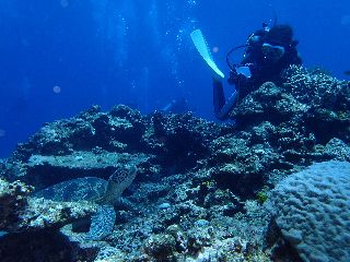 サンゴに癒されながら、アオウミガメ鑑賞会。